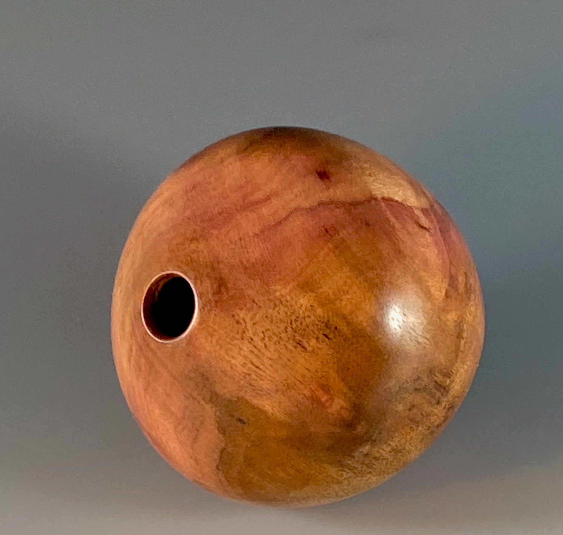 Hollow form turning is one of the most challenging techniques for a woodturner to master. Here, although the walls are very thin, all material was removed from the 0.5" hole at the top.